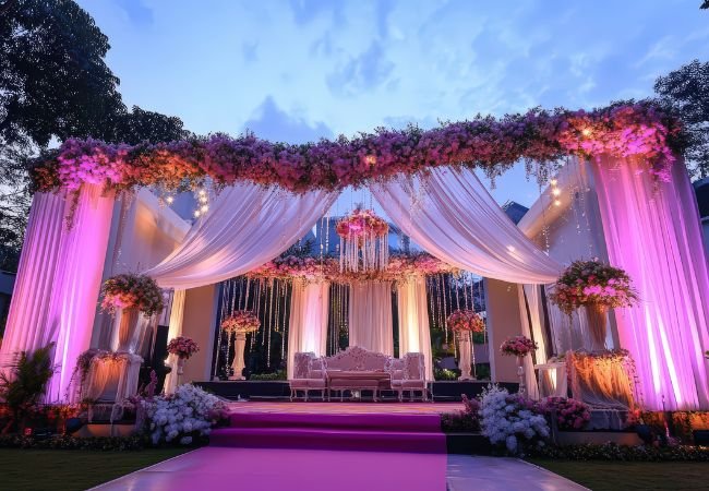 Based in Indira Nagar, Lucknow, we provide complete decoration services including flower decoration, balloon setups, stage design, and theme décor for all events.